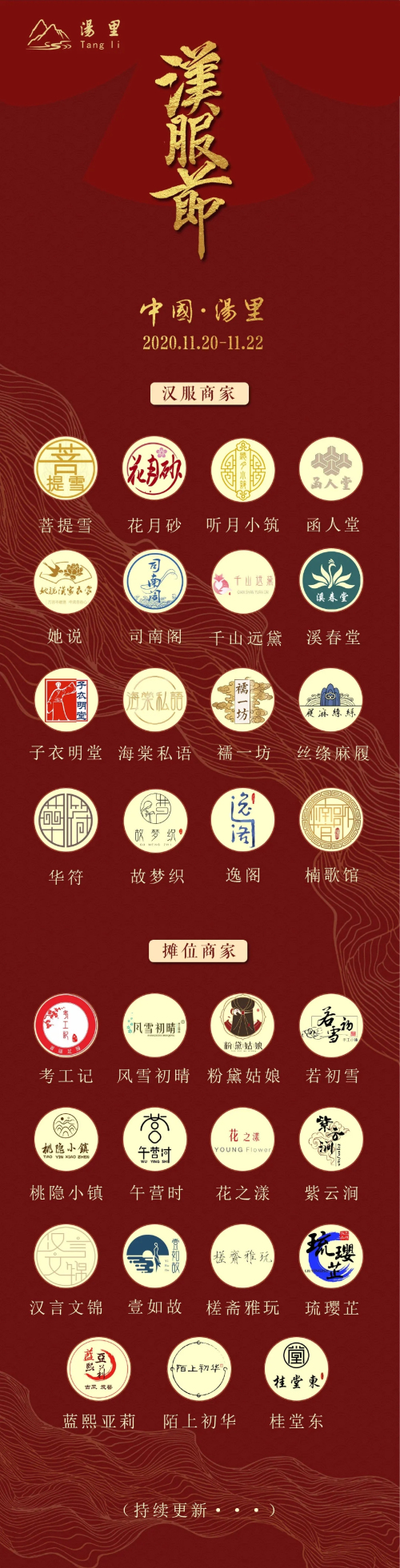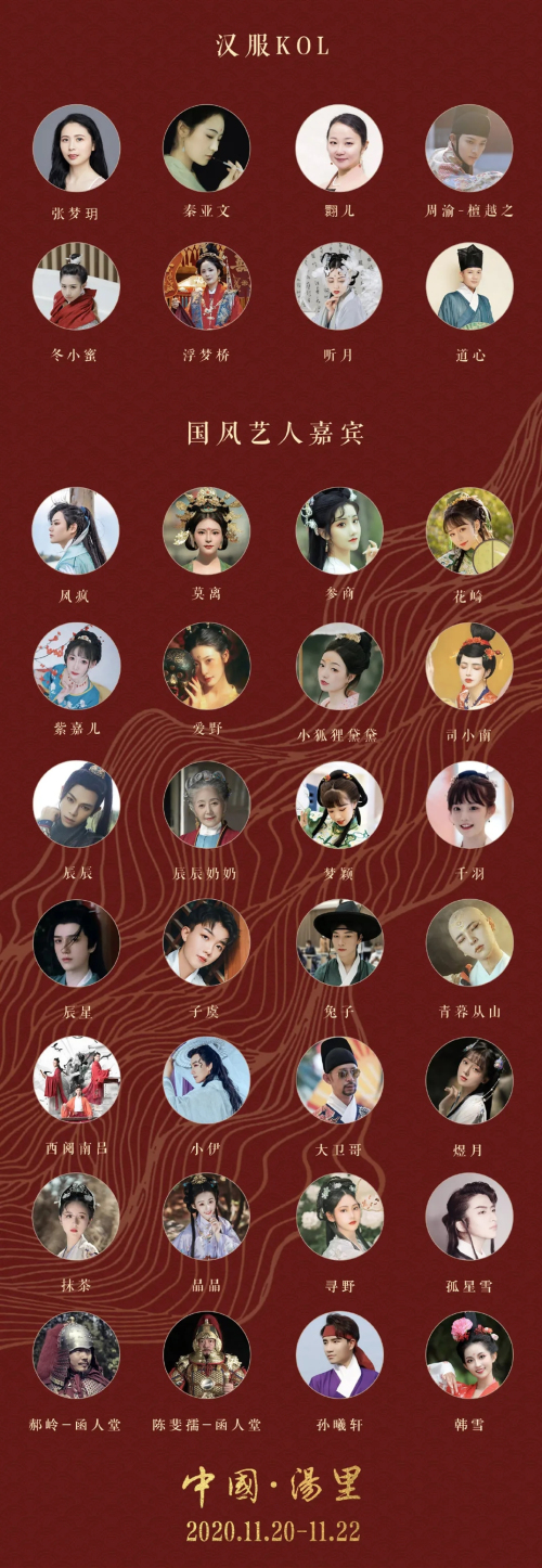 11月20日-11月22日,江西以及全国各地汉服爱好者将齐聚宜春市铜鼓县汤里文化旅游度假区,迎来一场汉服时尚盛事——“2020中国·江西汤里首届汉服文化节”。活动将邀请数十位国风推荐官、汉服KOL和艺人嘉宾,都是汉服圈内知名的小哥哥小姐姐,与大家面对面共同体验中华传统服饰之美。